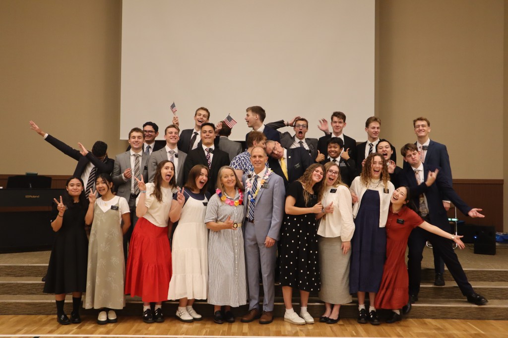 Our highlight so far was meeting our missionaries! We have some really great missionaries here in Tokyo South Mission. Like every mission, you have some missionaries that struggle and others that are so dedicated to their missionary purpose. Many of them were easy to spot as they came into the meetings. Each zone wanted to make us feel welcome. Knowing we had come from Hawaii they made us leis – leis made of origami cranes. One Elder made Laurie a lei of origami lotus flowers and another made a lei of many small cranes. One Japanese Elder brought us homemade cookies even. In meeting all of our missionaries we have discovered that they are very talented people. We have encouraged them to pray to be guided about how they can use their talents to serve the people here in Japan.