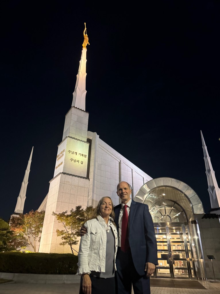 Since returning home from Korea we have kept busy with Stake Conferences and visiting wards. The wards always request that we speak in Sacrament Meeting but lately they have been asking us to do a Missionary Fireside after church. Because members often travel from so far away, they have a lunch and then the Fireside. Recently at the Fuchu ward, they put us front and center while everyone ate their lunch and asked us questions to get to know us. It started out a little awkward but ended up being a delightful time. While there, Laurie was talking with one of the Bishopric Counselors and discovered he had served his mission about 23 years ago in Russia. He happened to serve in the Moscow Mission with Laurie’s nephew, Nathan. She was even more surprised to learn he had just returned home from Kazakhstan the week before where they had dedicated the first chapel in that country. Laurie’s brother and his family had lived there for almost ten years, in fact, Nathan was called from the little branch in Almaty to Moscow, Russia.
