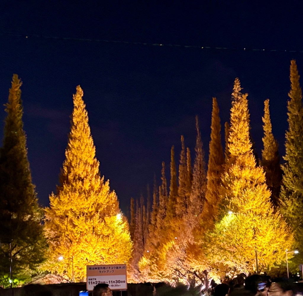 The Akasaka Palace is about a 45 minute walk from our house. We have walked that way many times to go to Keio University Hospital, so we knew of a road that is less traveled and so to avoid all the people we decided to return that way. You can imagine our surprise when we realized the entire street was celebrating the Gingko leaves changing. There were so many people the street was closed and every tree was lit up. It was beautiful!